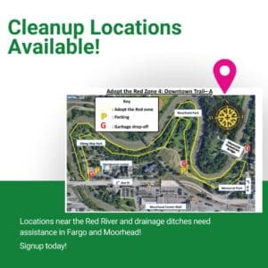 Volunteer cleanups are going strong, so let’s keep the momentum going! There are a number of locations near the Red River on both the Fargo