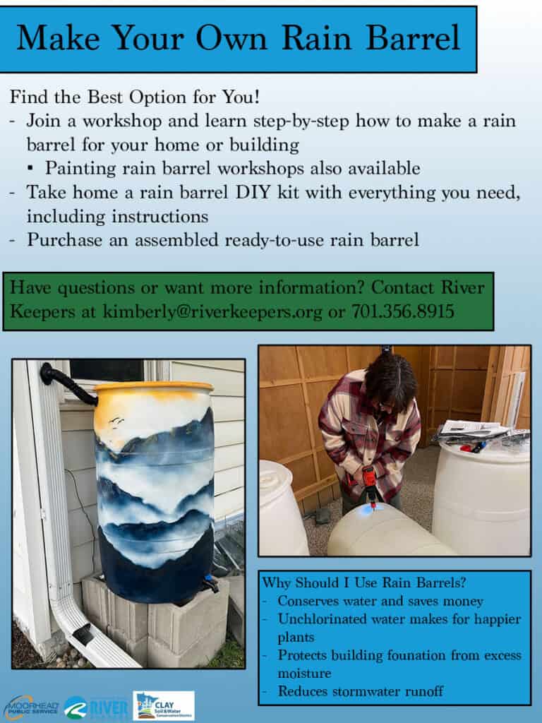 Create a resilient yard to sustain the Red River by building a rain barrel. Workshops include a short presentation on water quality and stormwater runoff.