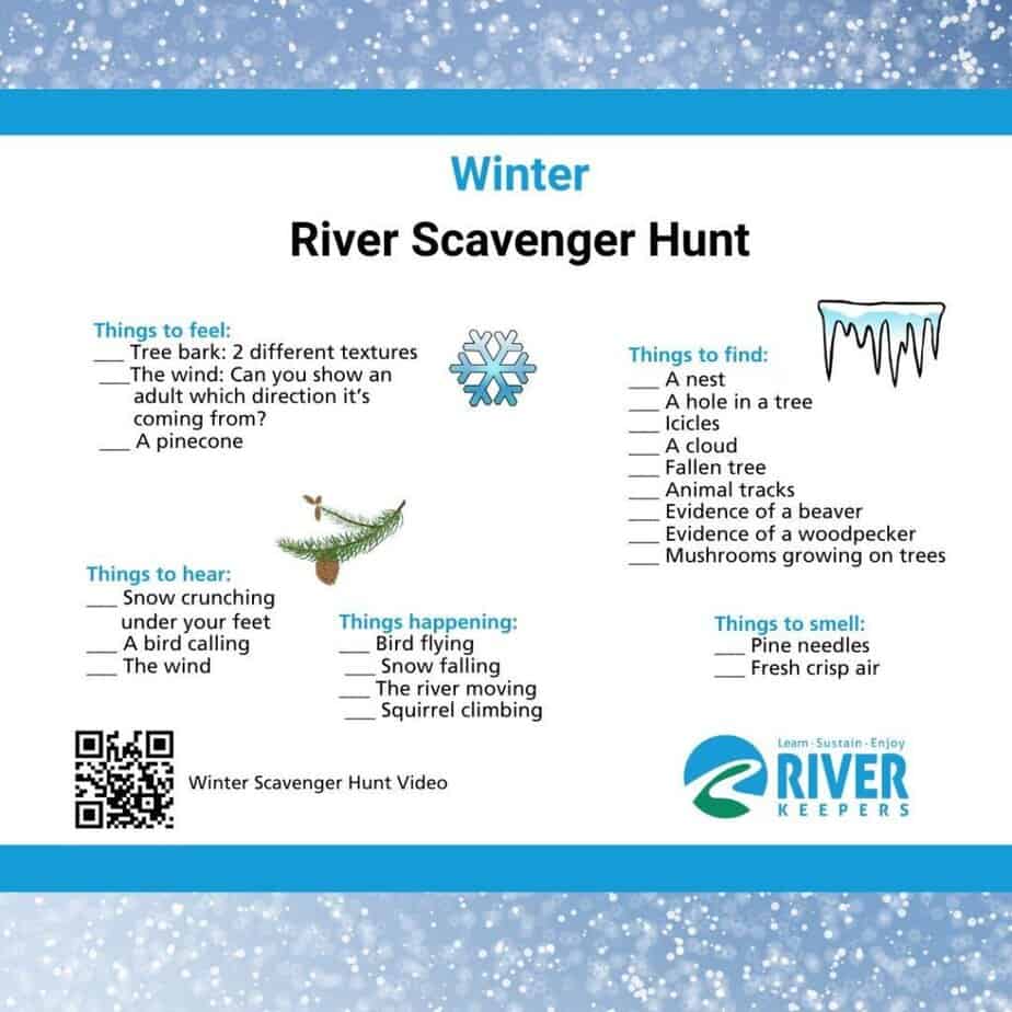 Plan a day to go out with our Winter Scavenger Hunt and see how many items you can check off the list! We also have a short video you can watch before you head out.